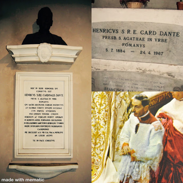 Aujourd’hui encore, Mgr Dante compte de nombreux adeptes parmi les liturges. Certains pèlerins venant à Rome souhaitent visiter encore aujourd’hui sa tombe. Il est enterré dans la crypte de la Basilique de Sainte-Agathe des Goths, aujourd’hui église titulaire du Cardinal Burke, située juste en bas de la rue derrière l’Angelicum. Demandez à la sacristie de voir la crypte du bas et le sacristain vous ouvrira la porte et allumera la lumière.